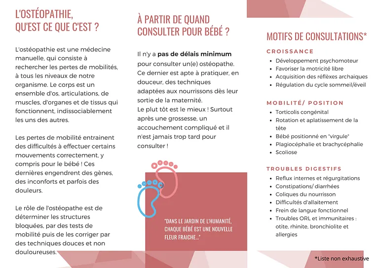 Notre équipe d’ostéopathes vous apporte un suivi personnalisé, en fonction de vos besoins et de ceux de votre enfant.